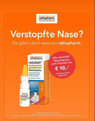 RatioSoft – Nasensprays 10€ 10€ Fixpreis für alle ratioSoft Nasensprays Aktionszeitraum: gültig bis 31.12.2025 Weiterlesen »