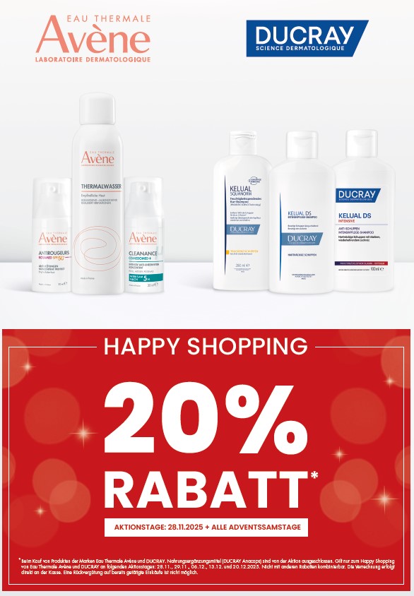 Avène/Ducray -20 % -20% auf Avéne und Duray Produkte gültig alle Freitage und Samstage im Advent Weiterlesen »