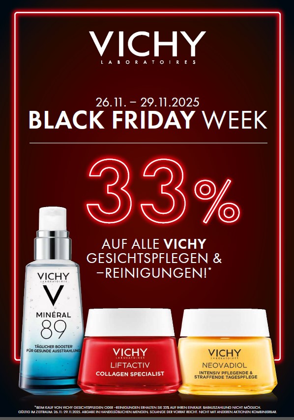 Vichy – Black Week! – 33% – 33% auf Gesichtspflegen & Reinigungen Aktionszeitraum: 26.11 – 29.11.2025 Weiterlesen »